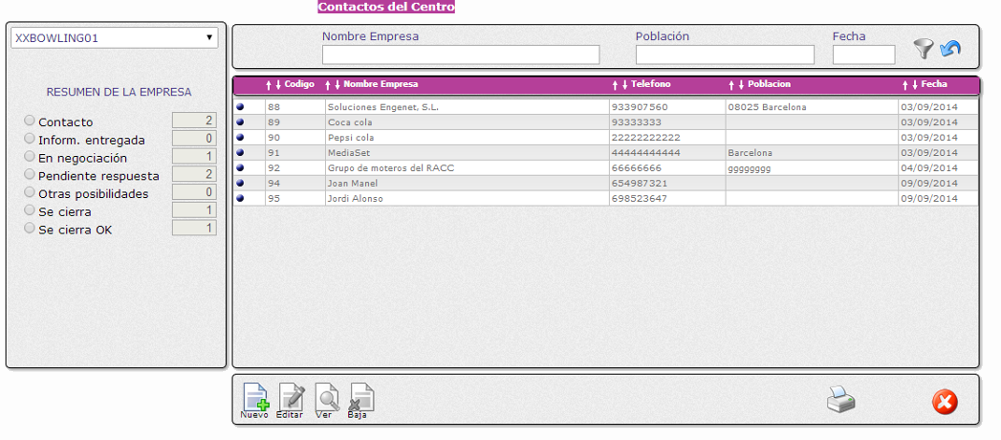 El sistema permite un número ilimitado de empresas y asociar a cada una de ellas, un número ilimitado de centros. Tanto si estos son propios, como si son centros ajenos.